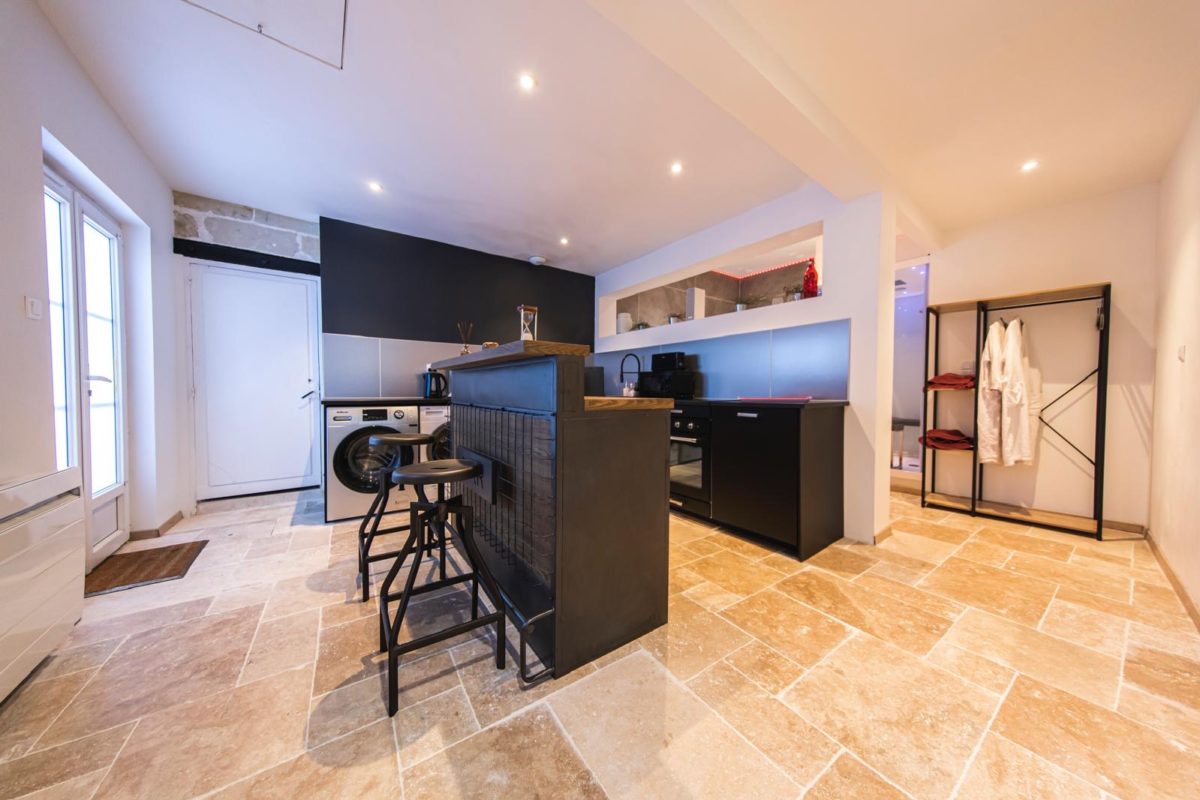 Une cuisine moderne toute équipée, afin de vous préparer de bons petits plats (lave vaisselle, four, réfrigérateur, plaque de cuisson induction, micro-ondes, machine à café, bouilloire, vaisselle et ustensiles).
