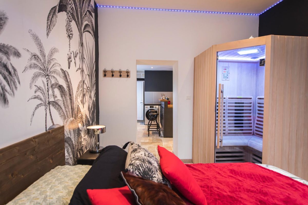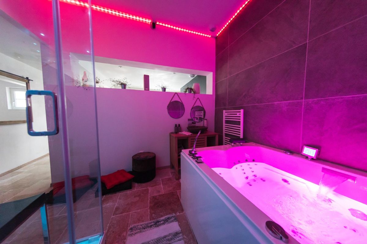 Le tout décoré avec soin, dans un esprit chic et haut de gamme. Jouez avec nos ambiances lumineuses et choisissez celle qui vous correspond le mieux ! Sans oublier l’espace nuit, vous plongerez dans un lit extra large et ultra confortable (matelas de grande qualité). Smart TV Wifi Afin de vous accueillir en toute discrétion, le logement dispose d’une entrée privée et indépendante, ainsi que d’une boite à clés sécurisée.
